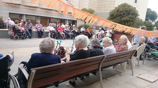 El jueves 14 de Mayo por la mañana ambientamos nuestro patio central con guirnaldas y música, una verbena en toda regla. Nuestras residentes se han colocado el pañuelo blanco y el clavel en la cabeza. Ellos, la gorra típica del buen chulapo. Juntos, hemos bailado, reído y disfrutado de la fiesta hasta la hora de comer. Cuenta la tradición popular que el chotis llegó a Madrid en 1850 y se bailó por primera vez, en el Palacio Real, la noche del 3 de noviembre de aquel año, bajo el nombre de Polca Alemana. A partir de ese momento, alcanzó gran popularidad y llegó a ser el baile más castizo del pueblo de Madrid, hasta convertirse en un símbolo del Madrid festivo. Se baila al son de un organillo se baila en pareja cara a cara, y durante el baile la mujer gira alrededor del hombre, que gira sobre su propio eje. Se dice que el hombre no necesita más espacio que el de una baldosa para bailarlo.
