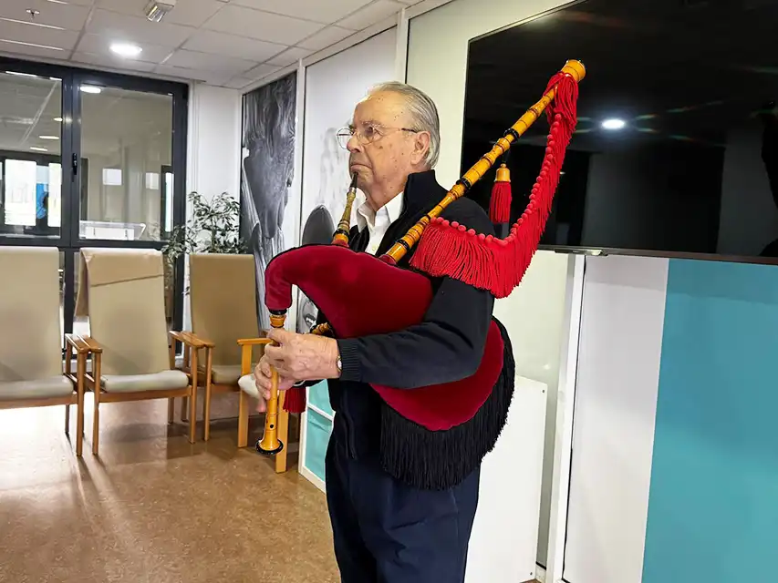 La residencia y centro de día Albertia Lugo conmemoró el pasado 10 de marzo el Día Internacional de la Gaita con una actividad organizada a partir de la iniciativa de uno de sus propios residentes. La propuesta consistió en una actuación musical en la que compartió su afición por este instrumento tradicional con el resto de compañeros y compañeras del centro. La jornada permitió introducir una actividad cultural diferente en la rutina habitual, fomentando la participación, la convivencia y el protagonismo activo de las personas mayores dentro de la vida diaria del centro.