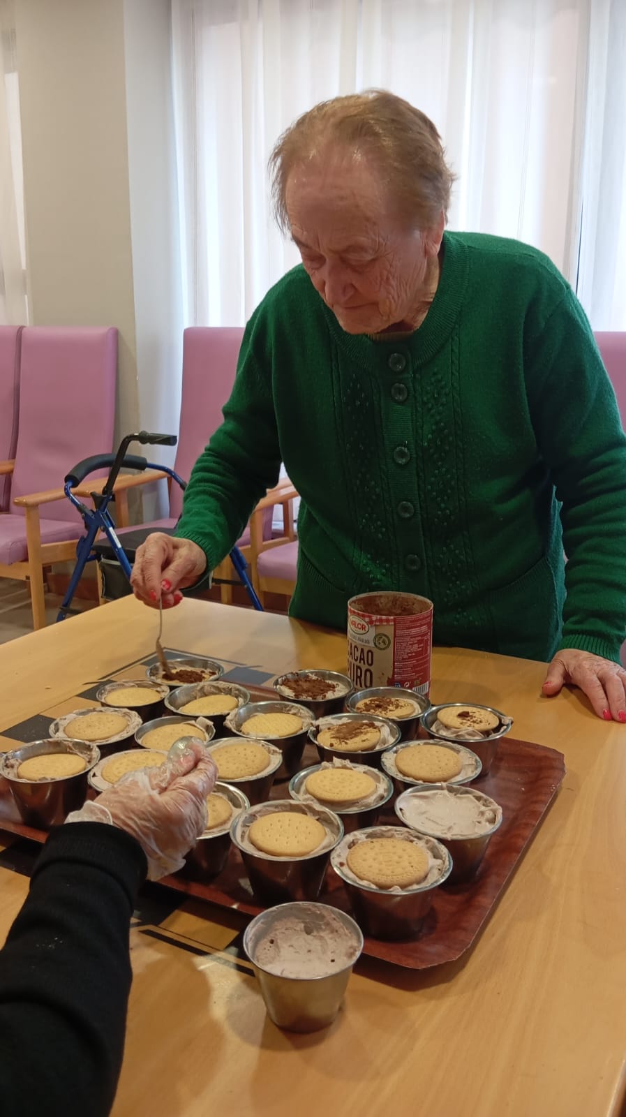 Otro beneficio significativo es el aspecto social. Estos talleres crean un espacio en el que los residentes pueden interactuar entre sí, compartir risas y experiencias, y fortalecer sus vínculos sociales. La colaboración en la preparación del postre fomenta el trabajo en equipo, lo que contribuye a mejorar el estado de ánimo y la sensación de pertenencia a un grupo.