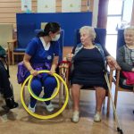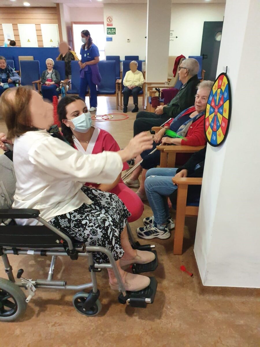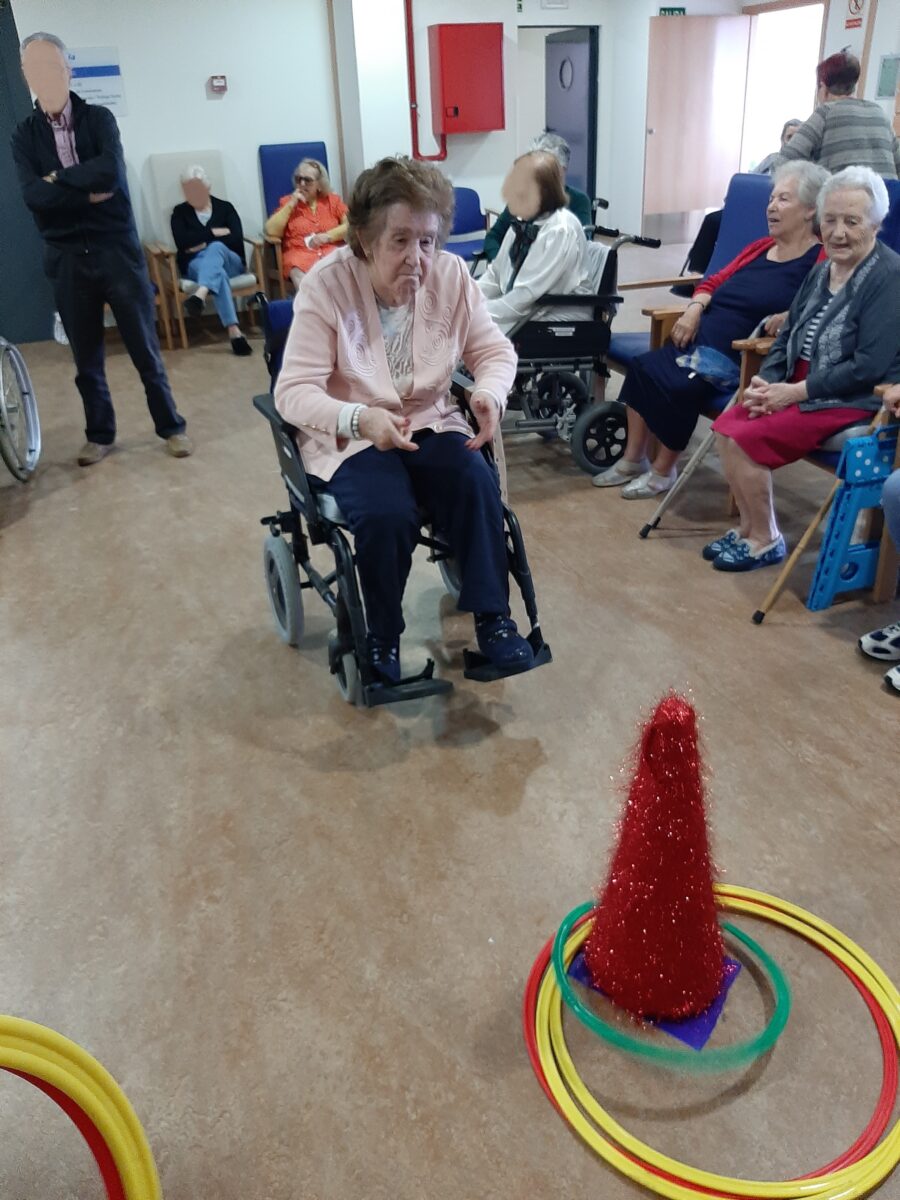 Para ello se organizó de manera conjunta con el departamento de animación sociocultural una actividad físico-lúdica. La actividad consistió en un circuito con 4 actividades por el que los residentes iban pasando en grupo.