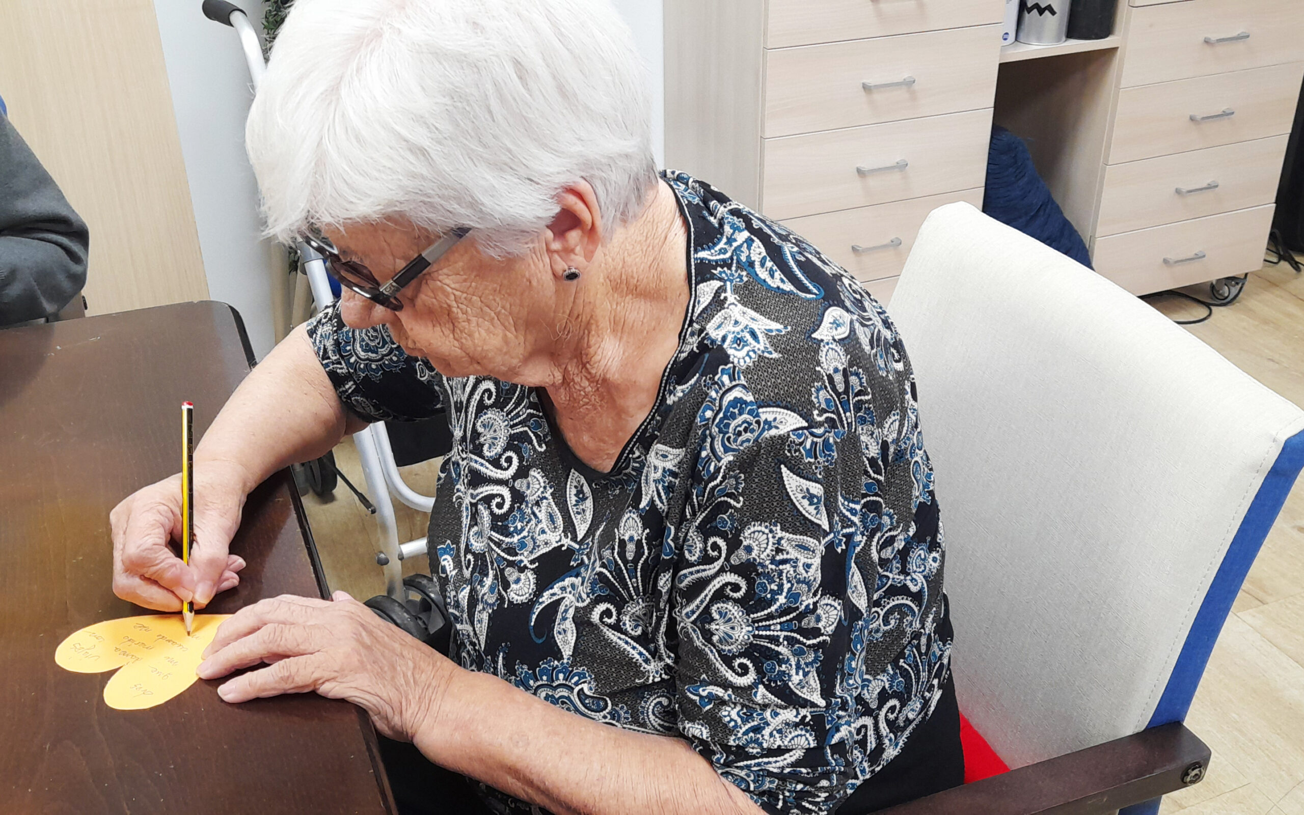 Participar en el taller de manualidades permite a los mayores estimular la motricidad fina y gruesa de las manos, estimular la coordinación óculo-manual y favorecer la expansión lúdica y su creatividad y, también, permite mejorar la autoestima y el bienestar emocional. Además, la conmemoración del Día Mundial del Alzheimer les permite ampliar conocimientos, estimular el lenguaje, la memoria, las reminiscencias y favorece las relaciones sociales.