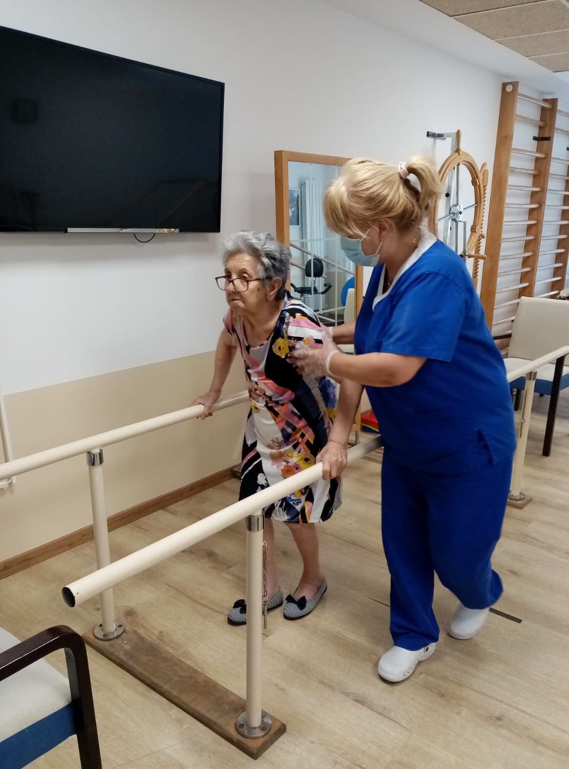 Otra de las actividades que se realizan son los paseos diarios, que se ejecutan junto a personal gerocultor supervisado por la fisioterapeuta y, por supuesto, los tratamientos de fisioterapia a nivel individual.