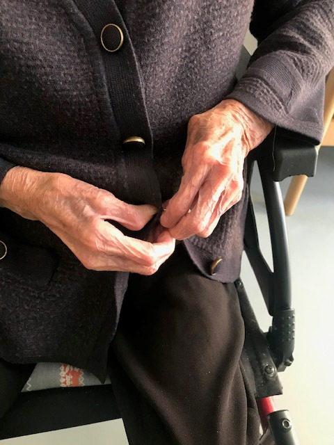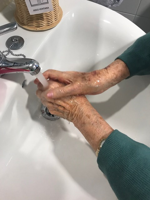 En los casos en los que el residente lo precise, se colocan pictogramas en la zona de trabajo para que sea capaz de relacionarlos con la acción o, en otros casos, es necesario que la terapeuta inicie el gesto y luego el residente lo finalice por sí mismo.