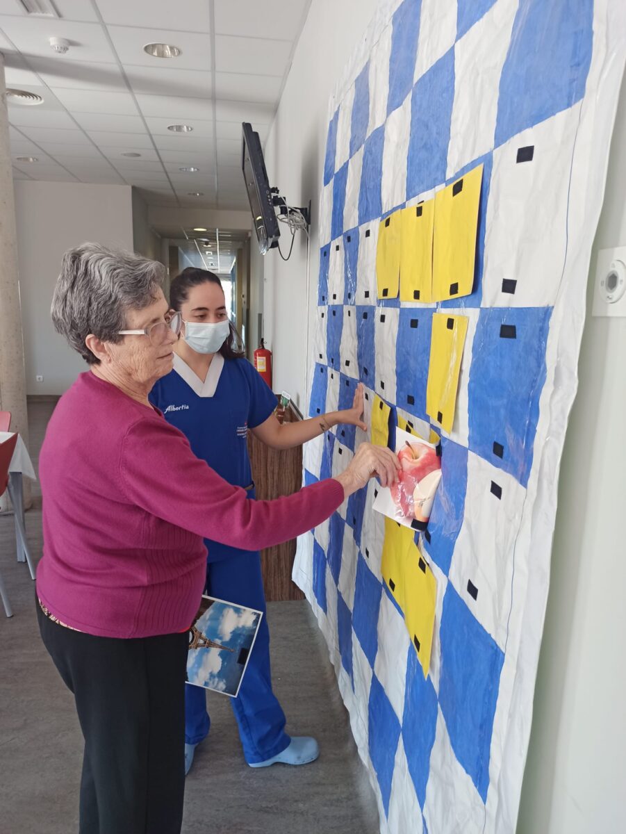 Con respecto a la parte funcional de la actividad, el residente tendrá que estar en bipedestación si así es posible o en silla de ruedas si no es capaz de la misma. También se trabajará miembros superiores a la hora de colocar fichas e inferiores al tener que agacharse para la realizar la actividad.