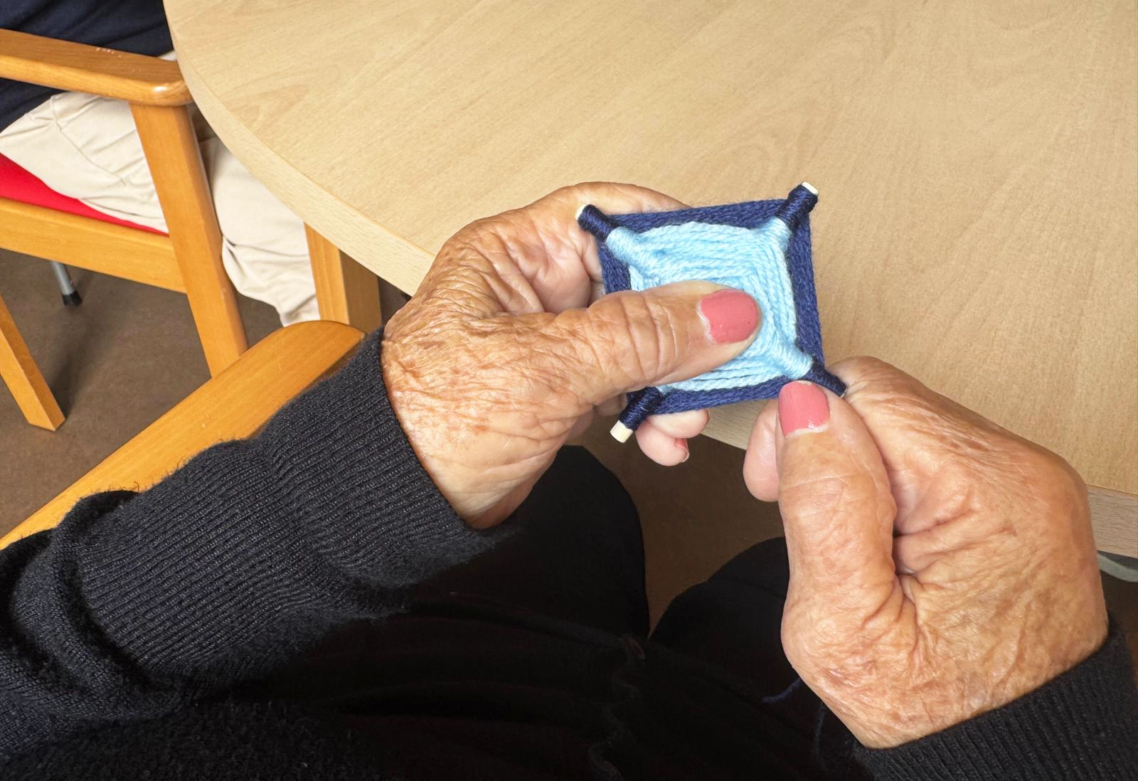 Durante la última semana, un grupo de residentes participó en una actividad funcional complementaria: la elaboración de originales llaveros de hilo. Esta tarea no solo fomentó la creatividad, sino que también ayudó a entrenar la coordinación mano-ojo y la motricidad fina.