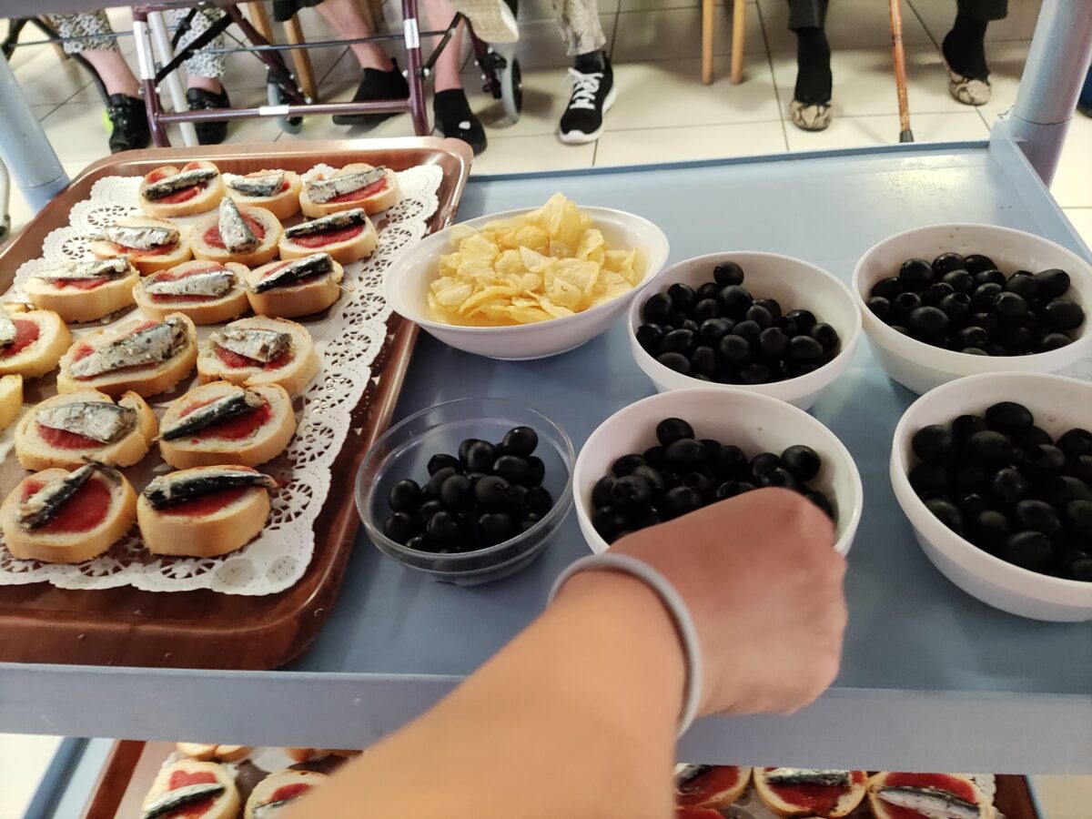 La fiesta se ha desarrollado en el salón general, que hay mucho espacio, ya que hoy el día estaba lluvioso y no hemos podido celebrarla al aire libre como nos hubiese gustado a todos. Hemos bailado y cantado música típicamente festiva de los pueblo. Además de beber limonada y comer un estupendo aperitivo que nos han preparado desde cocina y estaba riquísimo.